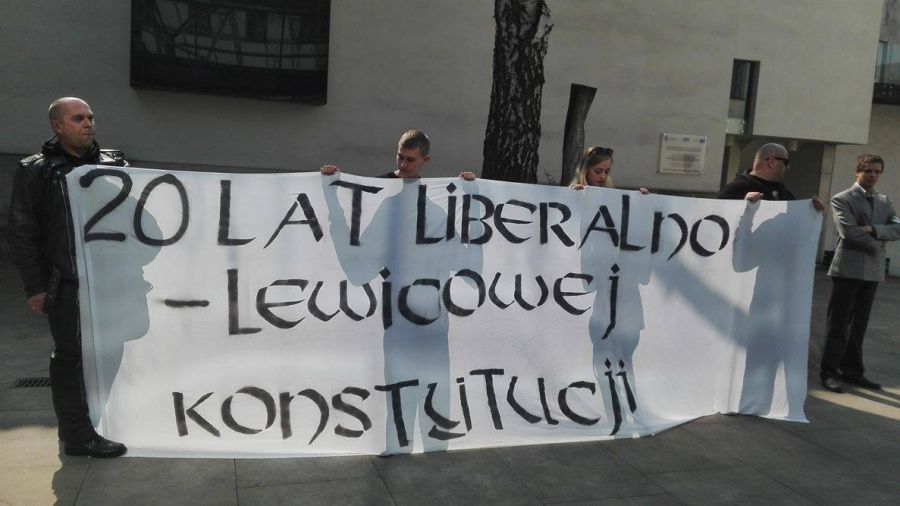 Posiedzenie prowadził Marek Mazur, który przemawiał również jako pierwszy. Po nim głos zabrali Witold Stępień i Józef Zych. Kolejnym prelegentem miał być już Andrzej Rzepliński. Na tę okazję przybyli działacze ONR rozwinęli transparent o treści „20 lat liberalno – lewicowej konstytucji”, który idealnie oponował z tym, co do tej pory usłyszeć można było z mównicy, z której to mamiono zgromadzonych, że treść naszej konstytucji wpisuje się w chrześcijańskie korzenie Europy, co jest oczywistą nieprawdą.