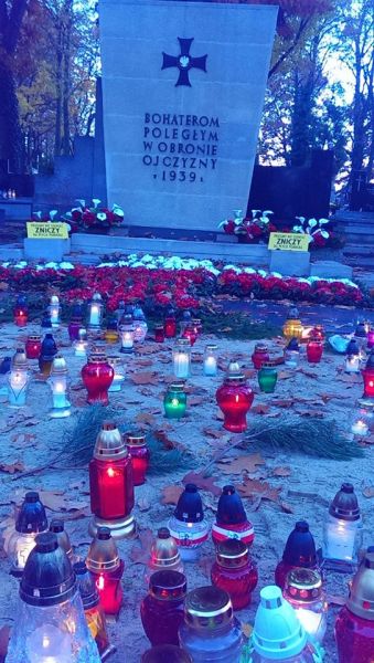 Poza bohaterskimi, często tragicznie zmarłymi Polakami, odwiedziliśmy również miejsce pochówku księdza prałata Ryszarda Olszewskiego, który okazał nam swoją nieocenioną pomoc na początku działalności Obozu Narodowo - Radykalnego w Pabianicach. Jutro większość z Was skieruje swoje kroki na pabianicki cmentarz. Gorąco zachęcamy, abyście znaleźli choć chwilkę czasu i oddali symboliczny hołd tym, którzy dla naszej Ojczyzny poświęcili wszystko, płacąc za to nierzadko cenę najwyższą. Możecie tam udać się w większym gronie, zapalić znicz i oddać się modlitwie, a wszystko to po to, żeby nie pozwolić, aby historia zapomniała o ich czynach. Bez nich nie byłoby nas, jesteśmy im to wszyscy winni. Chcielibyśmy również zwrócić się do osób, dla których dzisiejszy dzień jest jedynie "wesołą" zabawą w związku z Halloween. Pamiętajcie, że bez tych ludzi, których dzisiaj odwiedzili pabianiccy narodowcy Wasza beztroska impreza z całą pewnością nie mogłaby się w dzisiejszych czasach odbywać. Prosimy serdecznie, abyście wzięli te słowa pod rozwagę i jutro znaleźli moment, aby im za to podziękować. Niezmiennie zachęcamy do czynnego włączenia się do zainicjowanej przez ONR Pabianice akcji "Ocalić od zapomnienia" i czekamy na informacje o nieznanych nam jeszcze opuszczonych grobach zapomnianych bohaterów.